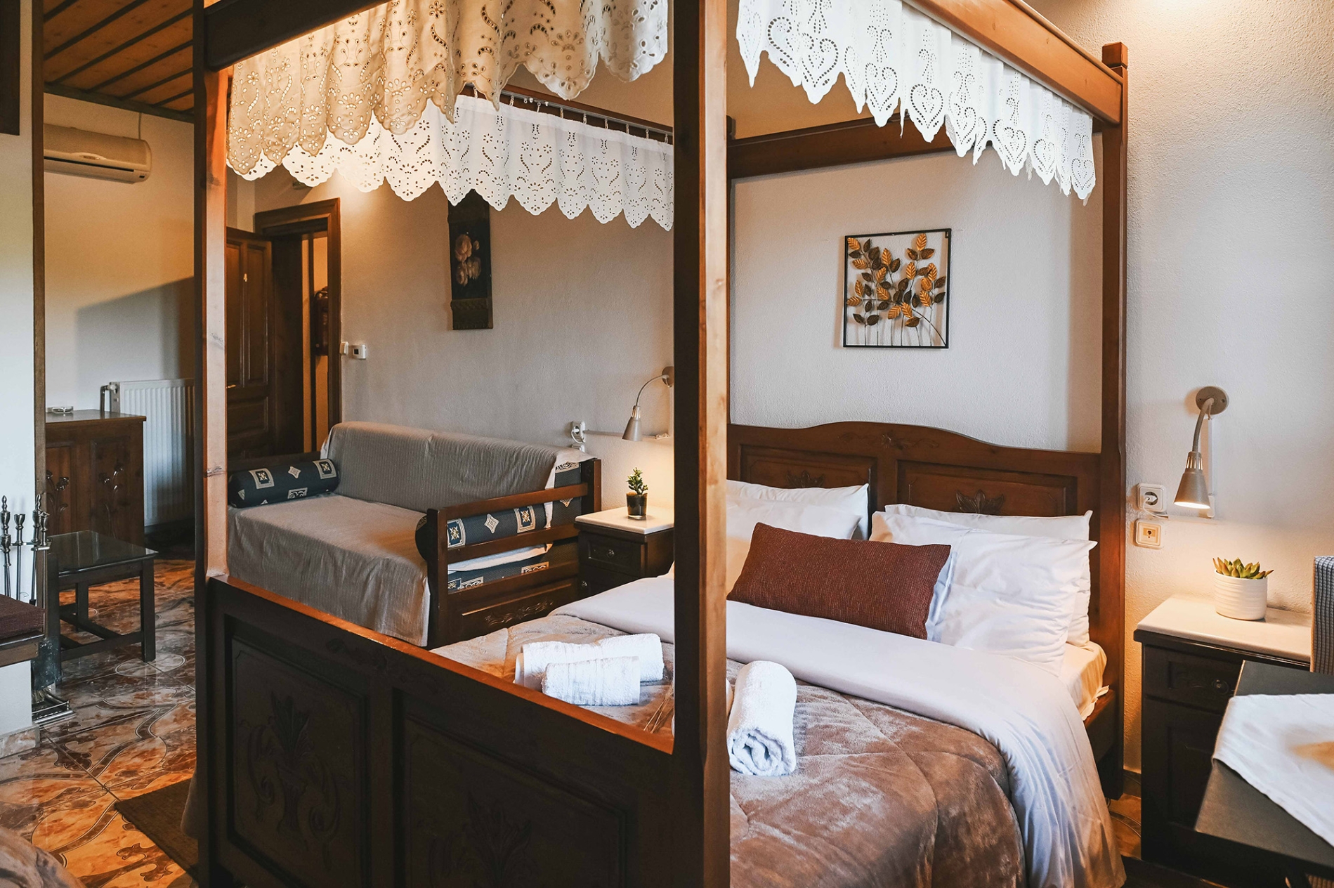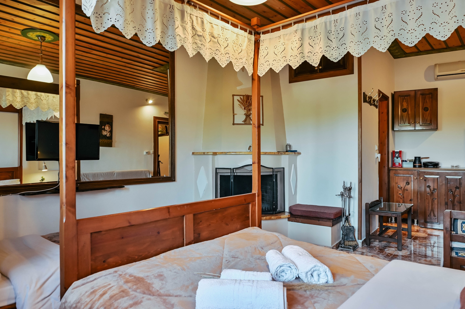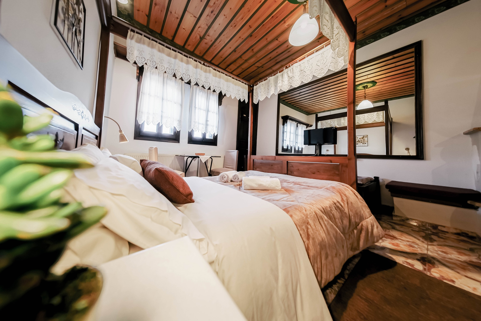 - Κρεβάτι με ουρανό, που προσδίδει αρχοντική αίσθηση στον χώρο