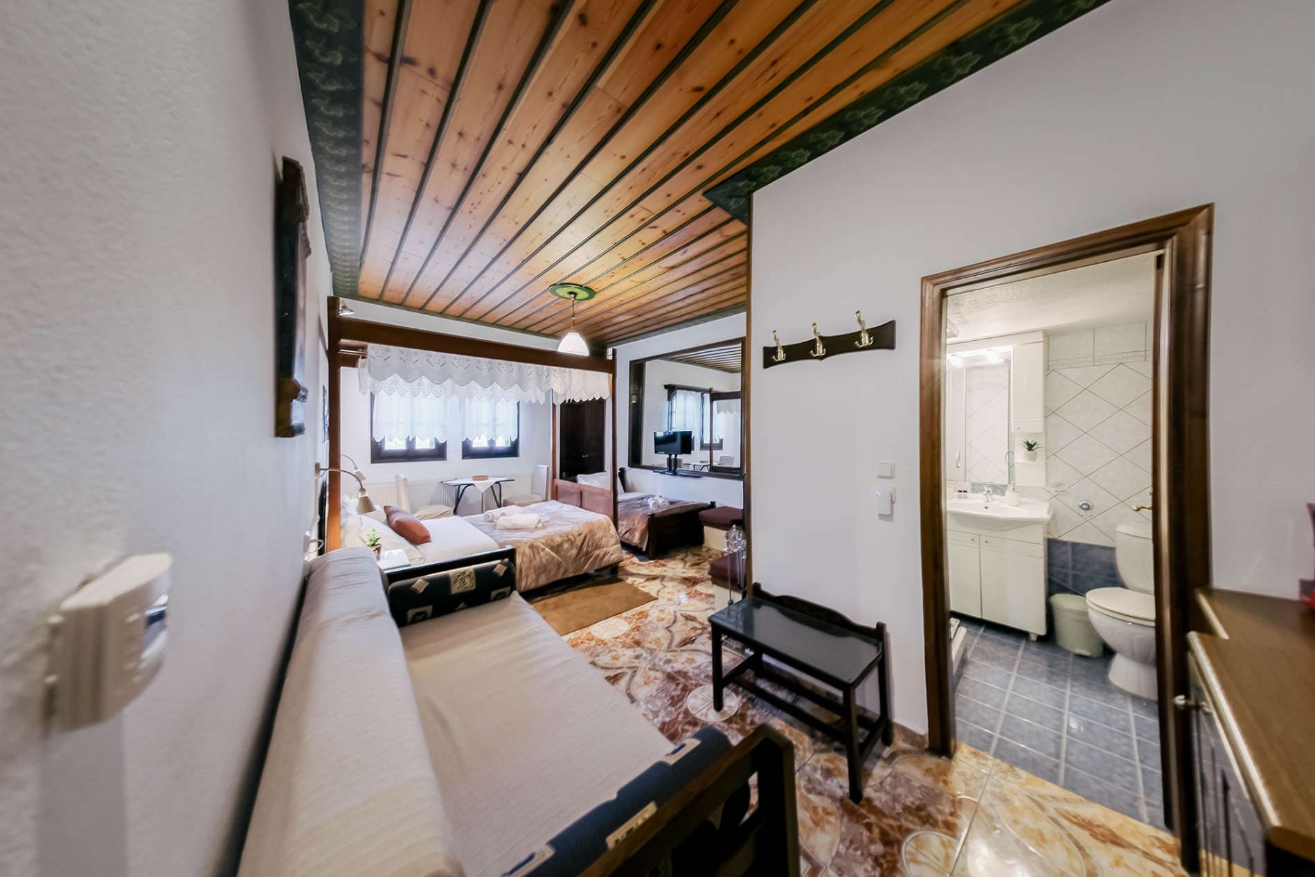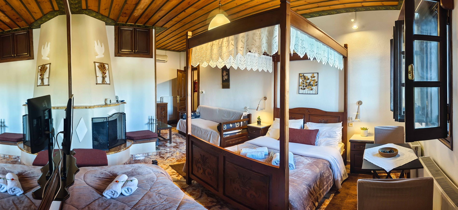 Εμπνευσμένο από την Αρεθούσα, τη μυθική νύμφη των πηγών, το δωμάτιο αυτό των 30 τ.μ. αποτελεί την ζεστό περιβάλλον και τις επιλογές για οικογένειες ή παρέες που αναζητούν έναν φιλόξενο χώρο διαμονής, απολαμβάνοντας την παραδοσιακή ατμόσφαιρα με όλες τις σύγχρονες ανέσεις. Ζήστε μια μοναδική εμπειρία διαμονής στο "Αρεθούσα", έναν χώρο που συνδυάζει την παραδοσιακή αισθητική με τις σύγχρονες ανέσεις, προσφέροντας μια αυθεντική φιλοξενία στο μαγευτικό Πήλιο.